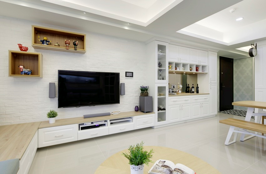 說到鄉村風,當然不能少了文化石建材,別於精緻細膩的樸實原始質感,設計師特地在客廳與鄉村風板材結合成為視聽主牆,把田園間愜意鄉村感帶進屋內,雖同為白色系卻因其相仿材質更顯溫暖,在一片精細質感造型線板中,保留一面牆安排質感較為原始的建材,成了全室的視覺焦點,從這就能感受到設計師細膩安排,總覺得你家鄉村風少了一味嗎?快試著拼貼一面文化石牆面吧!